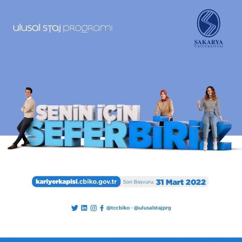 4.Öğrencilerimize ilişkin Ulusal Staj Programı süreci Sakarya Üniversitesi Kariyer ve Yetenek Yönetimi Koordinatörlüğü tarafından yürütülmektedir. Daha fazla bilgi almak için ve herhangi bir sorunla karşılaşmanız durumunda kariyer@sakarya.edu.tr adresine e-mail atabilirsiniz.