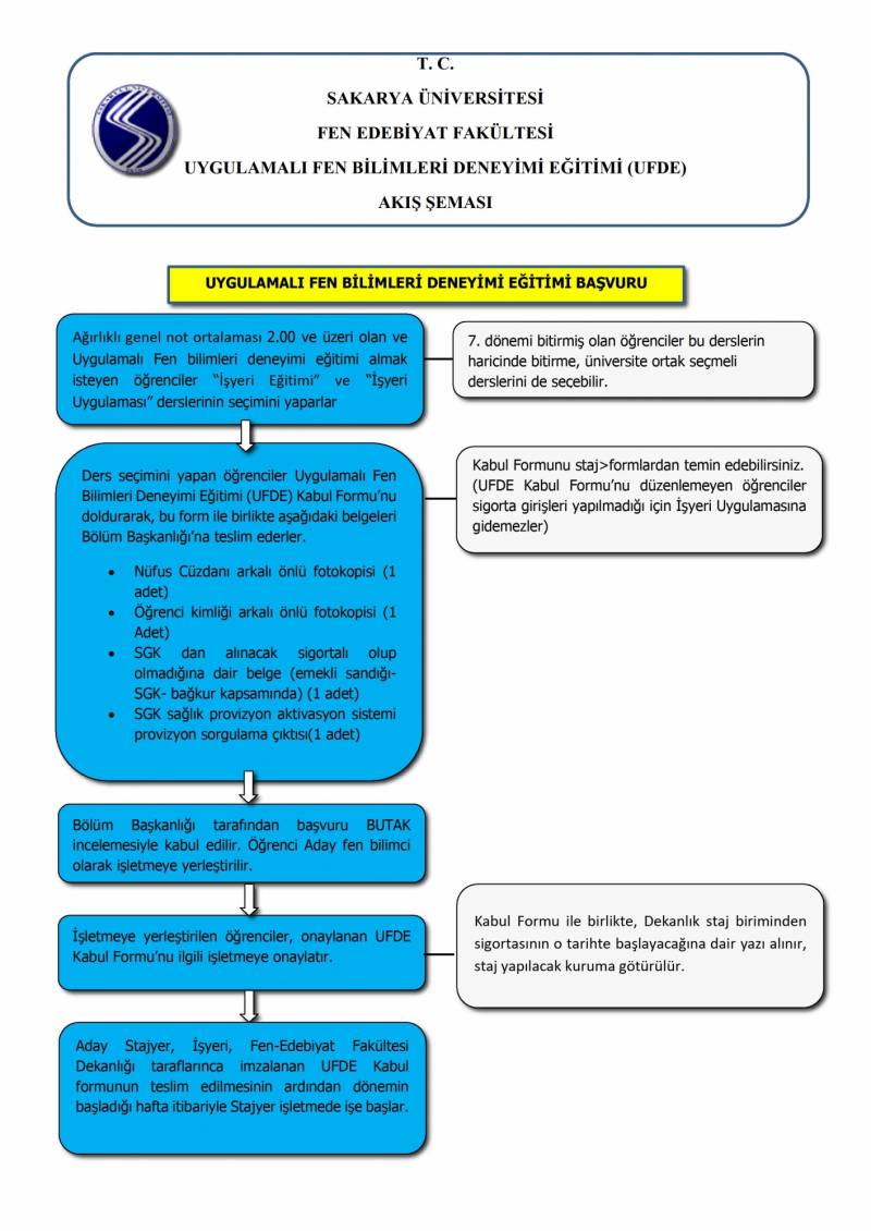Sakarya Üniversitesi Fen Fakültesi tarafından daha nitelikli Fen Bilimci (Fizikçi/Kimyager/Biyolog) yetiştirilmesinde yeni bir model olan Uygulamalı Fen Bilimleri Deneyimi Eğitimi (UFDE) programı, 2021-2022 öğretim yılı bahar yarıyılından itibaren uygulanmaya başlanacaktır.